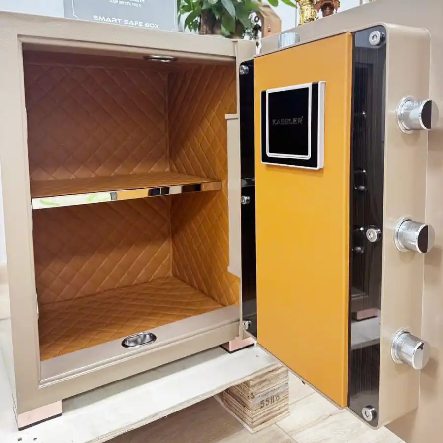 Két thông minh Kassler KL-55H8 là giải pháp bảo mật hàng đầu, kết hợp thiết kế tinh tế và công nghệ bảo mật tiên tiến. Với kích thước gọn 550420360 mm và khối lượng 53kg, Két thông minh Kassler KL-55H8 dễ dàng đặt dưới bàn làm việc, trong tủ hoặc phòng ngủ, vẫn đảm bảo an toàn tối đa. Màu xám xanh sang trọng giúp két hài hòa với mọi không gian sống hiện đại, trở thành điểm nhấn tinh tế và tiện lợi.